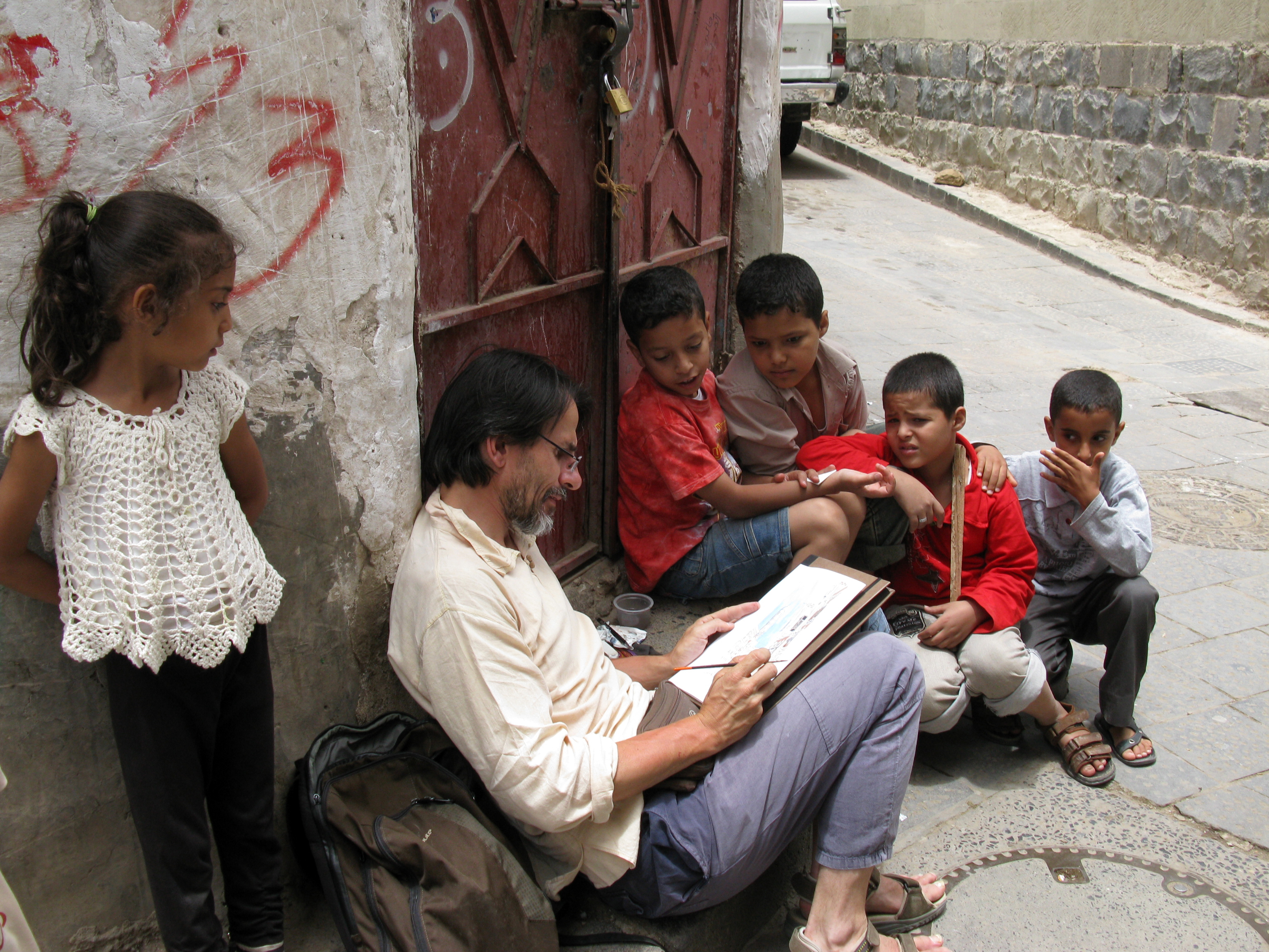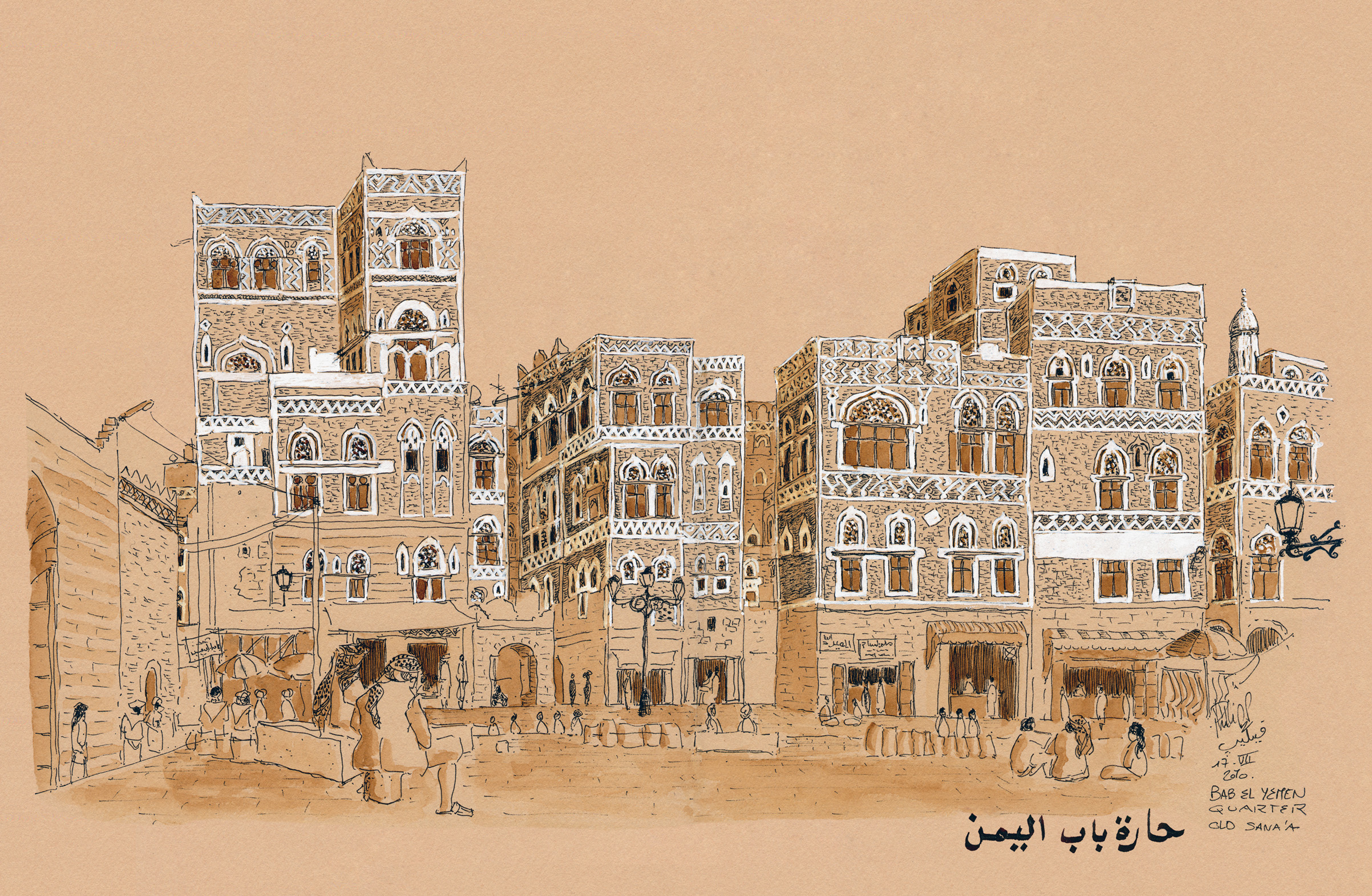 He was absolutely delighted when he first travelled there in 2009, a lonely six weeks tour by share taxis throughout western Yemen. He was overwhelmed by the outstanding architecture but also by the discovering of a so authentic and welcoming country. Speaking a little Arabic and playing ud, plus the fact that he draws on the spot helped him to meet several people. He was glad to be invited in 2010 by the Yemen Department of Tourism along with seven other European artists, a wonderful opportunity to increase his Yemen’s work.To know more : www.globecroqueur.com